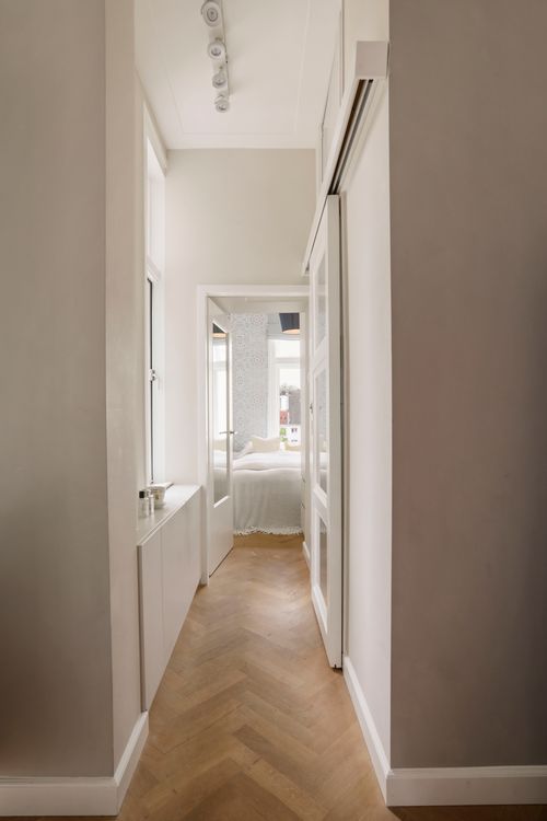 This project in the Plantage neighbourhood in Amsterdam exemplifies how the essence of a home can be rediscovered when you go back to its foundations. By stripping the apartment down to its bare structure, we were able to carefully rebuild it—layer by layer—with attention to flow, proportion, and atmosphere. Every detail was thoughtfully reintroduced: from the rhythm of the restored wall mouldings to the precision of custom built-ins that respect the architecture’s original lines.